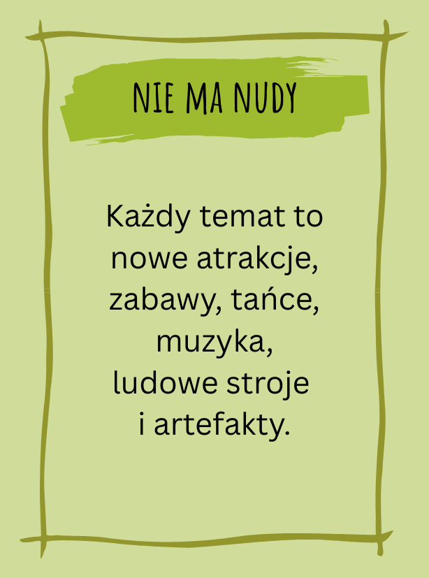 Istnieje możliwość przedłużenia wybranych zajęć do 90 minut w formie warsztatów etnograficznych.
