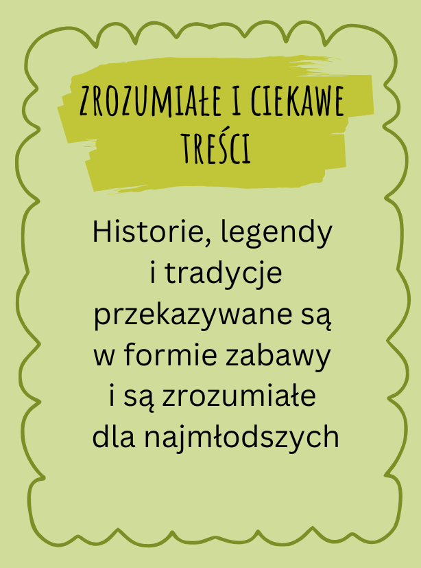 Podczas zajęć wykorzystujemy Kamishibai, czyli teatr ilustracji, który jeszcze bardziej pobudza wyobraźnię dzieci. Legendy, które dzięki niemu poznacie są opracowane przez nas, a większość obrazów tworzą i malują lokalni artyści.